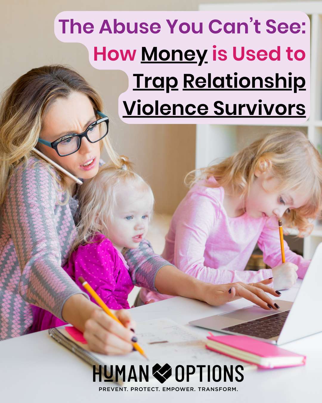 Before arriving at Human Options, Elena and her children were placed in a motel room due to the escalating violence in their home. For years, Elena endured daily abuse physical violence